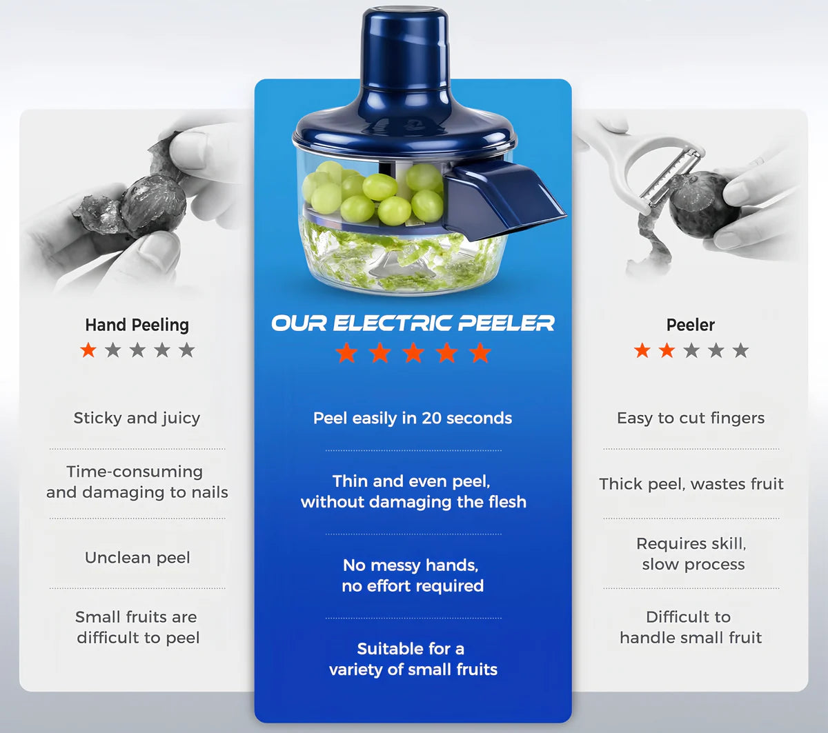 “Perfect for Fruit Lovers”😍🍒 If you love fresh fruit but hate peeling, this is a must-have. Clean peels, no wasted flesh, and my hands stay clean. Technology really does change lives! 🤯